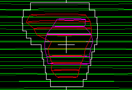 Zielvolumen: Rektum (rot), Risikoorgan: Blase (violett)