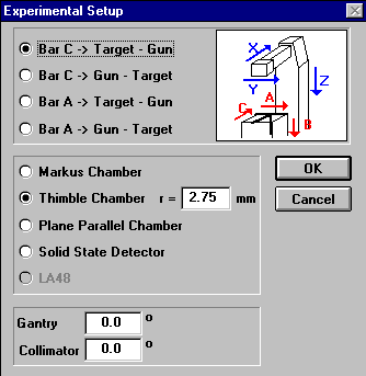 (0.125 cm3) was positioned with its center at Isocenter, at a water depth